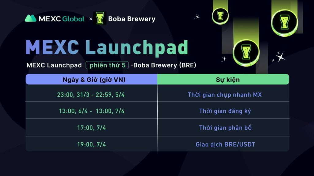 Phiên bản đầu tiên MEXC Launchpad đang ra mắt! Không gian duy nhất cho tương lai tiềm năng, dành riêng cho chủ sở hữu MX. Dự án cho phiên này là Boba Brewery (BRE)